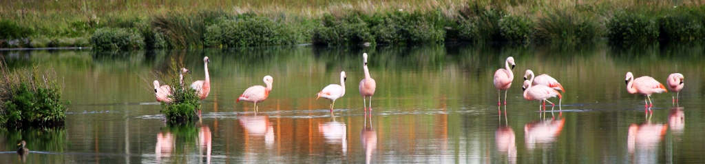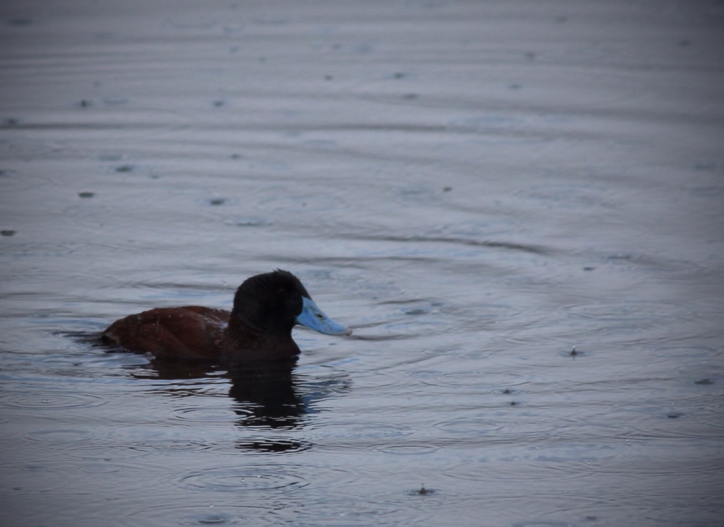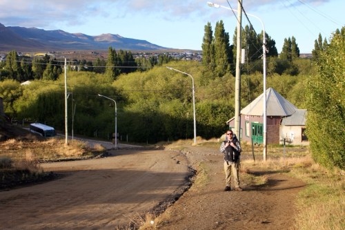 We decided to take a detour off the main road in town, trying to find access to Lago Argentino, and ended up at the Laguna Nimez Bird Sanctuary. Apparently, this is a favorite stop for birders in Patagonia; but we, not being birders, thought it was a good place for a walk and a view of the lake. And a chance to see wild Chilean flamingos up close. Yes, that's what I said: flamingos. We began our journey around the lagoon while the sun was shining. After about 10 minutes, the clouds rolled in. And after about 5 more minutes, the rain started. Not to worry! We devised an ingenious way of taking photos in the rain without getting raindrops on the lens, tested our waterproof gear, and actually got great views of some birds and the lake. The rain came and went, but we were not to be scared away by the characteristically unpredictable Patagonian weather.