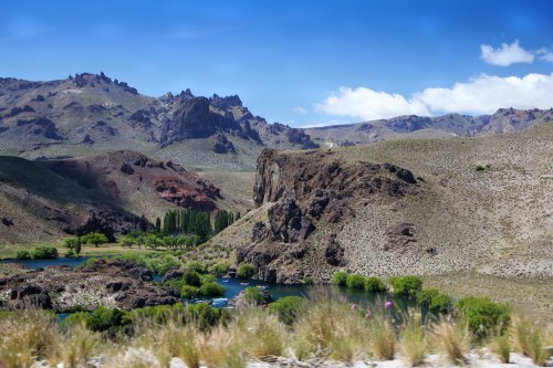 There are multiple ways to drive from Bariloche to San Martin. Yesterday, we took the most direct, most scenic way. This is consequently the longest way, due to the questionable road conditions. Today, we took the shortest in time but longest in distance way back to Bariloche, on a paved road skirting the backside of the Andes. The scenery on the drive was very pretty, but very different from the day before. The wide, meandering rivers and dry, desert-like scenery were beautiful; slightly reminiscent although less impressive than the eastern Sierras in California and Nevada.