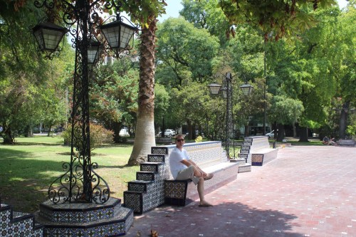 Mendoza is the first real city in Argentina where we have spent an appreciable amount of time. And what a great city it is! At the base of the Andes, this city is truly a desert. Through an impressive aqueduct system, the city is able to harness the water from melting snow in the Andes to create nothing less than an oasis. Every tree planted in the city is non-native, and the trees are one of my favorite things about this city! Every street is lined with huge sycamores that tower over the small streets and massive sidewalks. The shady sidewalks are at least twice as wide as the streets, and almost every restaurant or cafe has outdoor seating. The sidewalks are another point of interest: there is a huge variety of materials and designs used in the sidewalk. We are under the impression that the owners of each building are also in charge of designing the sidewalk in front of the building, leading to a beautifully eclectic mix of colors, patterns, and textures underfoot. Mendoza is very much an outdoor city; very pedestrian friendly and with more parks than I would have through possible in a small city!
