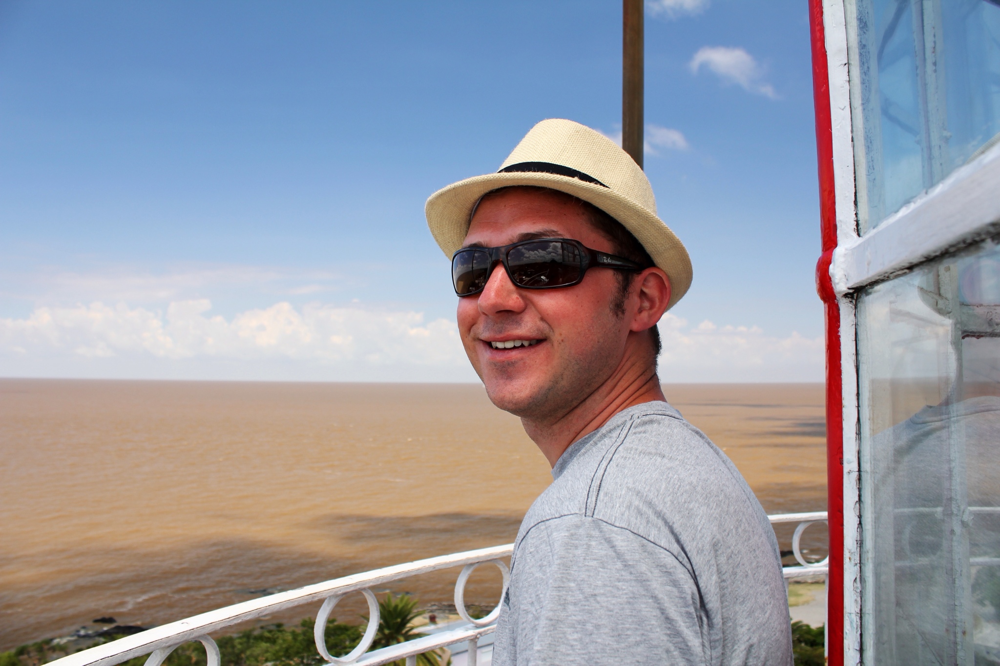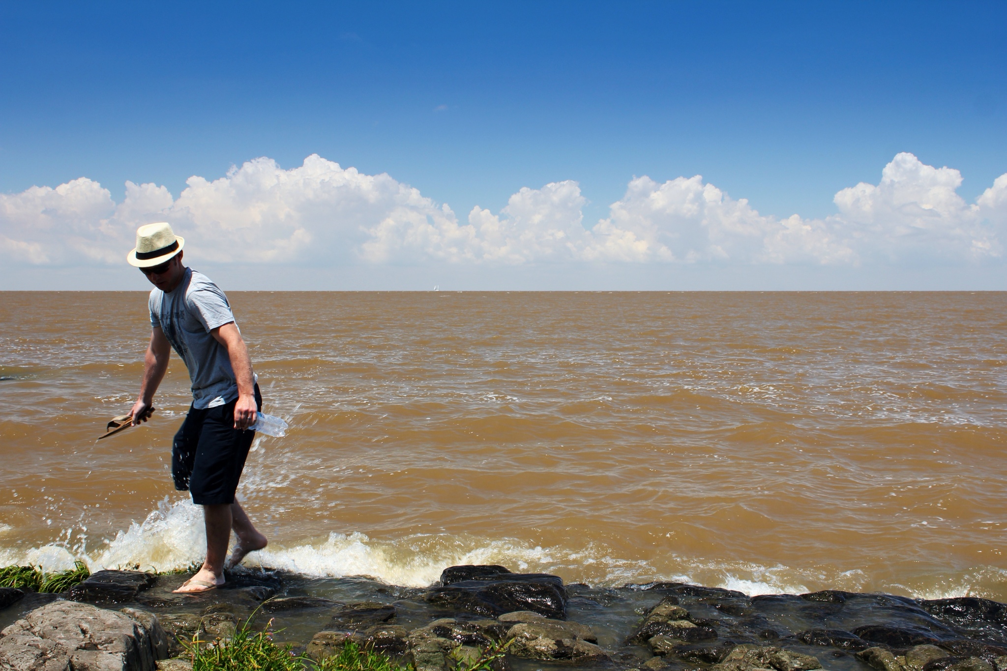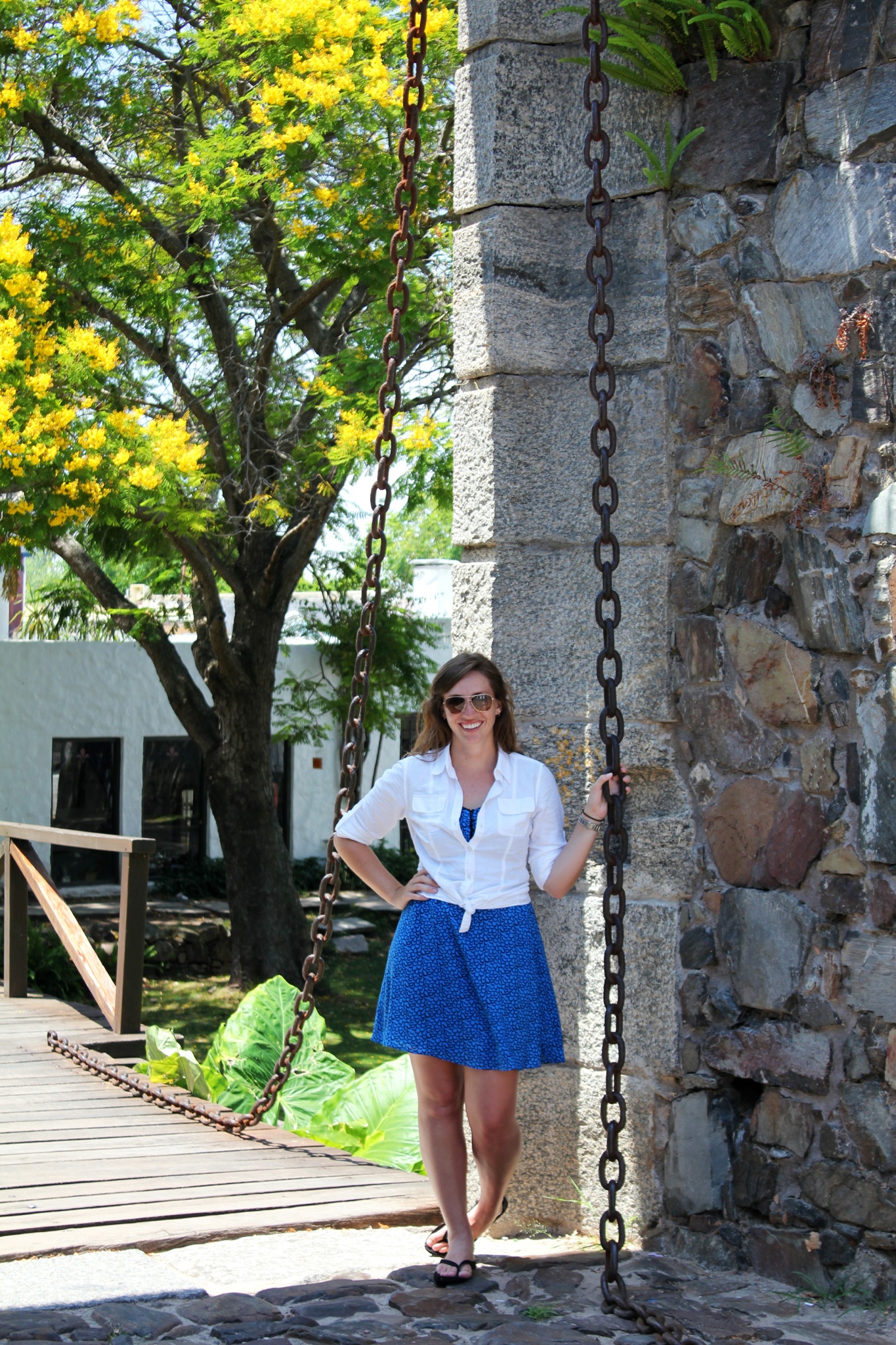 The next morning, with the cockroaches all retired to wherever they retire to, we began exploring town. We wandered through the cobblestone streets of the barrio historico, checked out the old pier, admired some public art at the Colonia cultural museum, climbed to the top of the lighthouse, and explored some old ruins and the restored city wall. This is where things got a little interesting. We found the city wall from the back side, and thought it would be fun to walk along the front of the wall, up to the door leading into the city. Well, the wall had been originally designed with a moat and a drawbridge, and the ledge we had been walking along ended about 10 feet short of the gate. We thought we could just hop down from the ledge (about four feet to the ground), and walk up to the gate. Hop we did; right into the mud. Yep, the moat still holds onto water a lot better than the surrounding landscape and we found out the hard way that it's almost always filled with a good inch or two of sticky, stinky mud. Good thing the river was nearby for a quick foot washing!