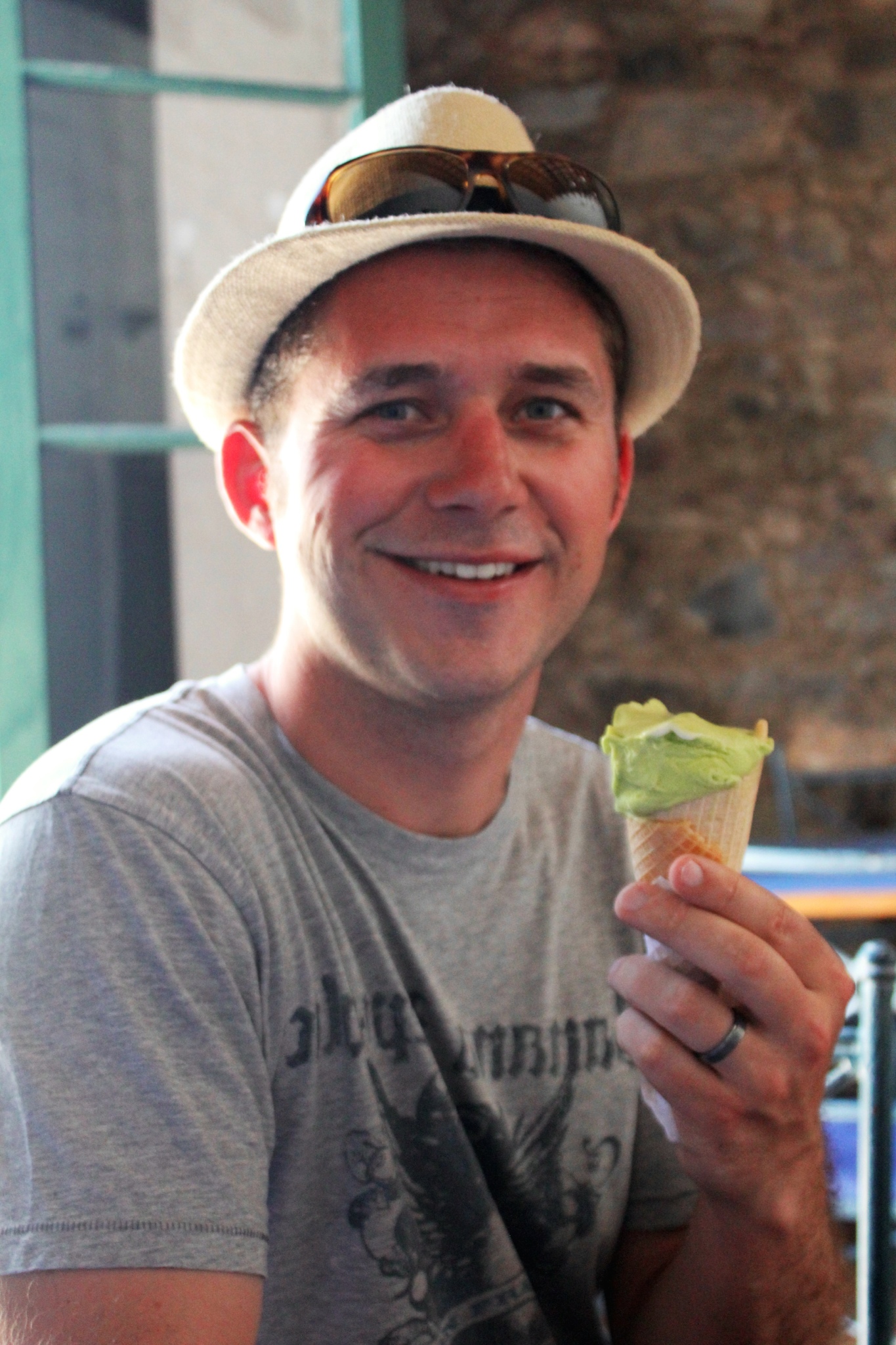 We had explored all of the barrio historico in a few hours, so we found an ice cream shop to cool ourselves down a little bit. And Justin was probably the happiest kid ever: pistachio flavored ice cream in Uruguay! His absolute favorite. I stuck to dulce de leche, and we both enjoyed our last ice creams!
