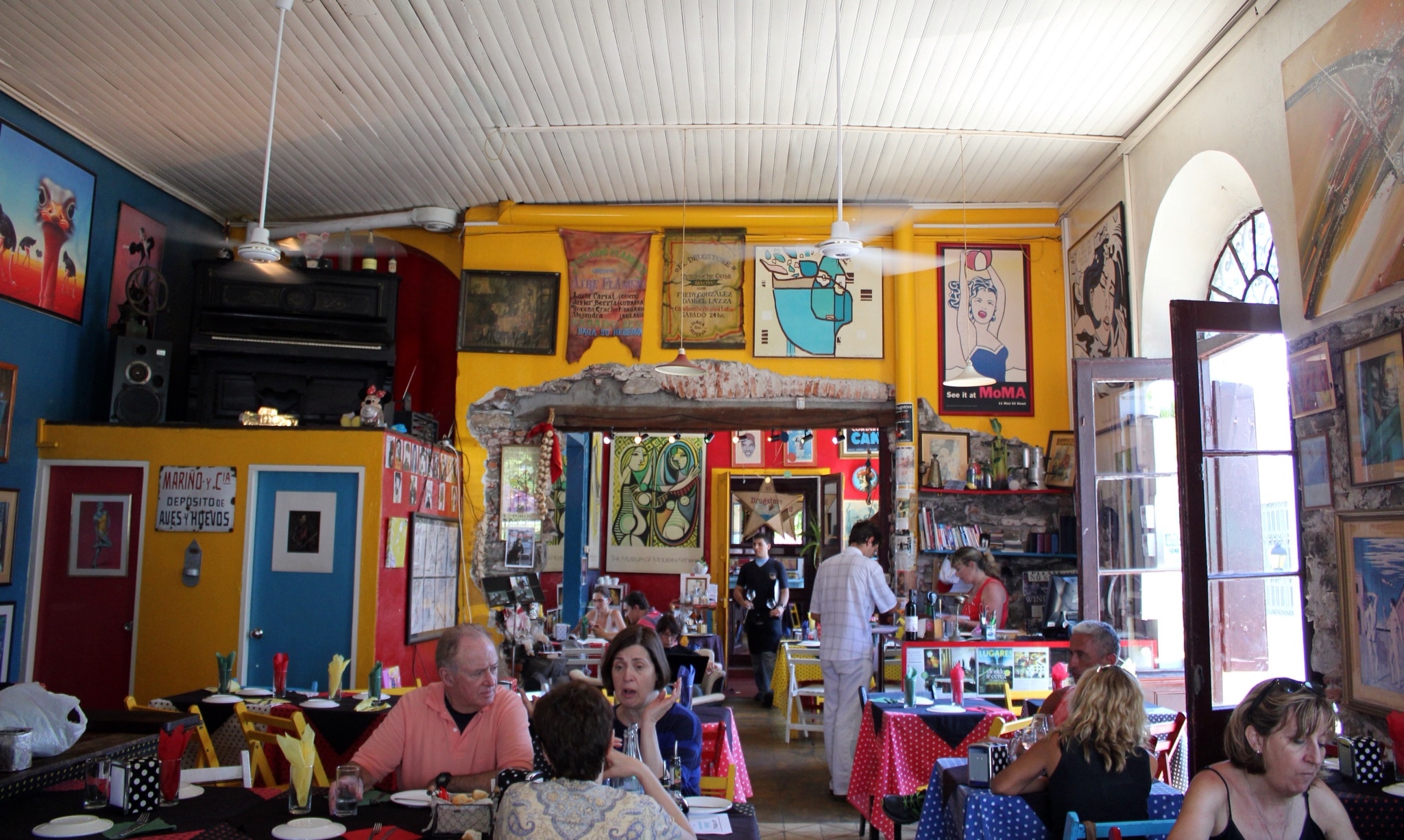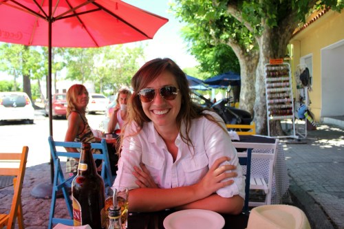 The ice cream excitement and all the exploring had worked up our appetites. We stopped at the Drugstore for lunch, sat outside on colorful chairs under colorful umbrellas on cobblestone streets while being serenaded. It was very picturesque, the food yummy, and the beer cold. We couldn't ask for more!