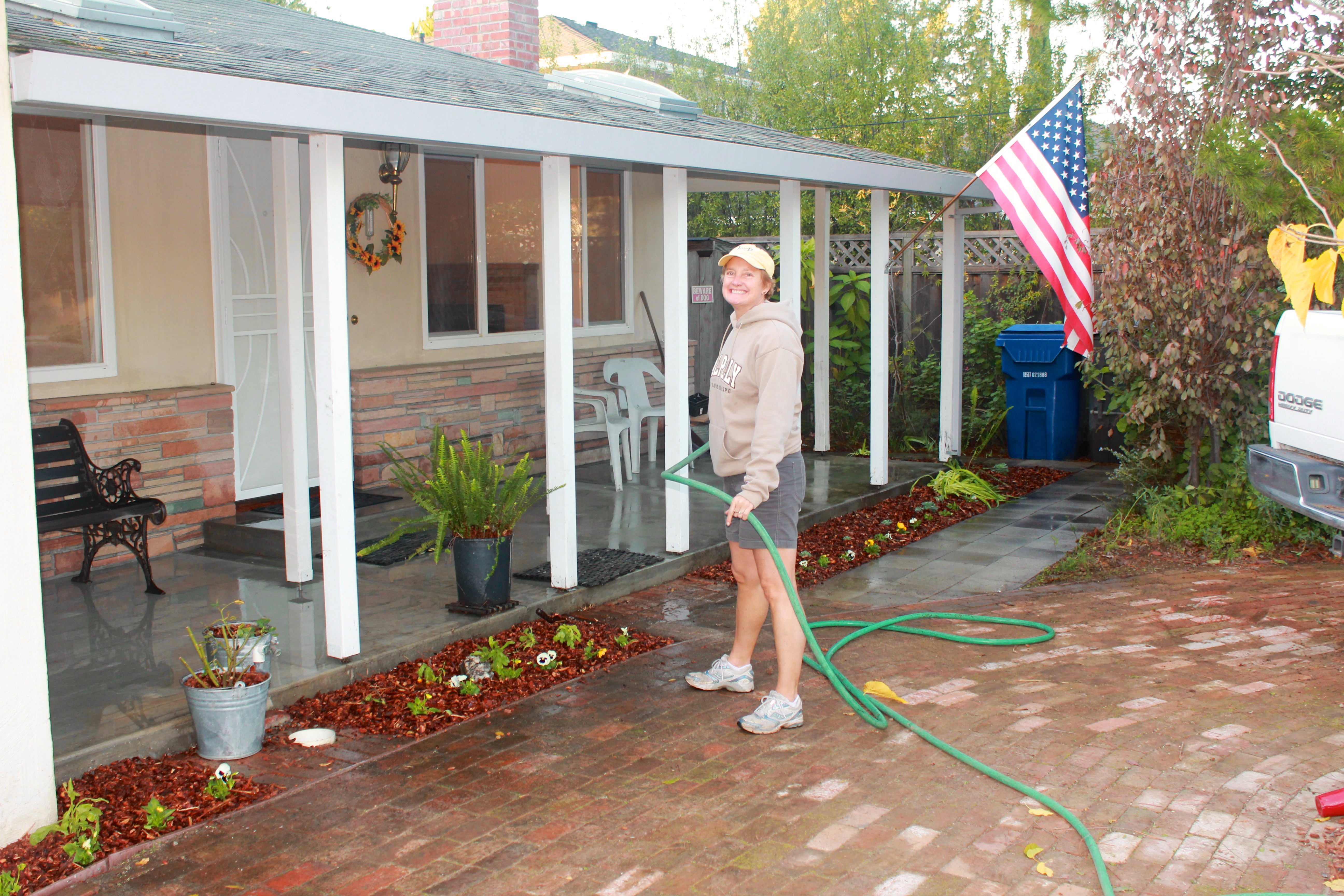 The post-weeding front yard. See all the garbage bags and the big green garbage can? All FULL of weeds!