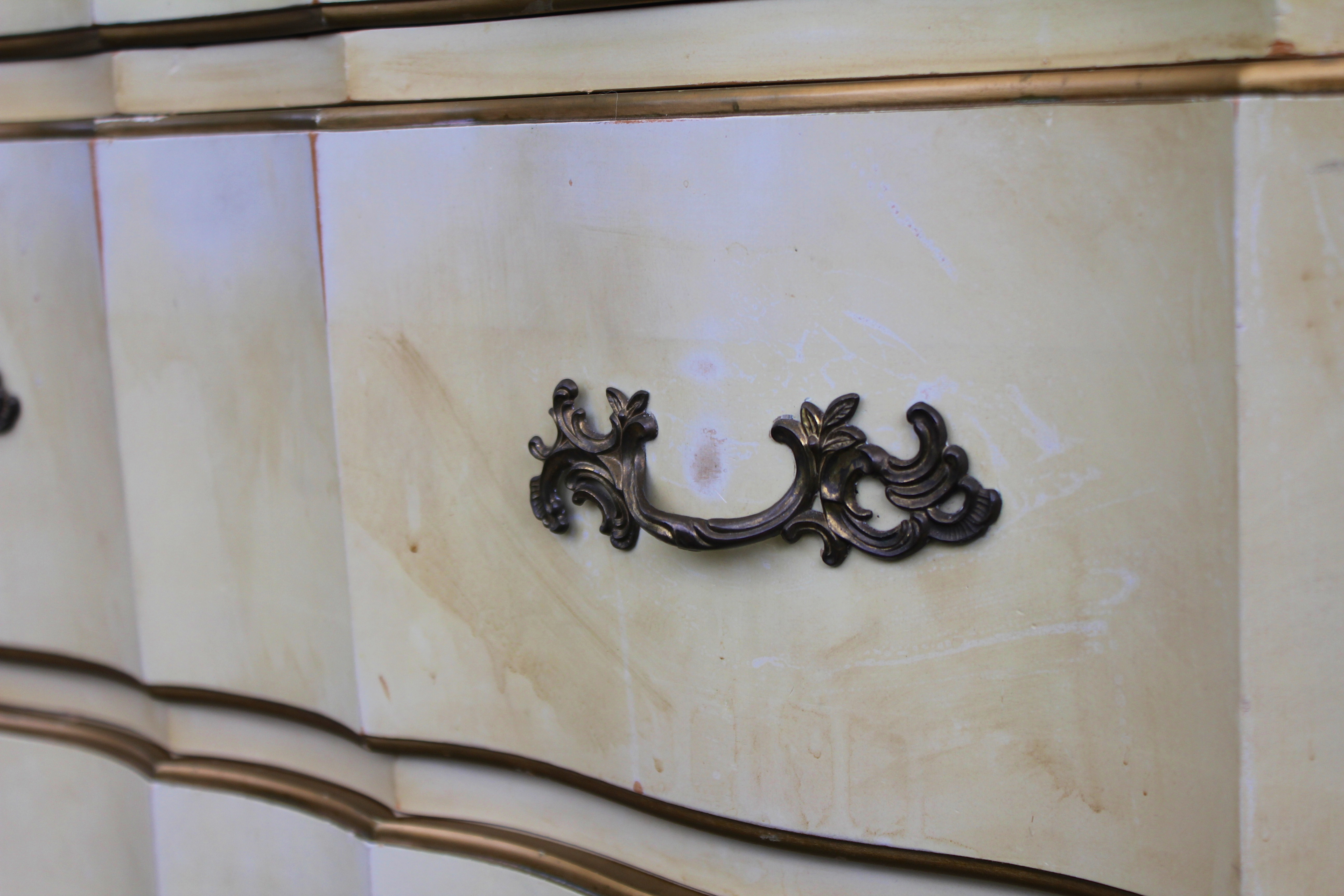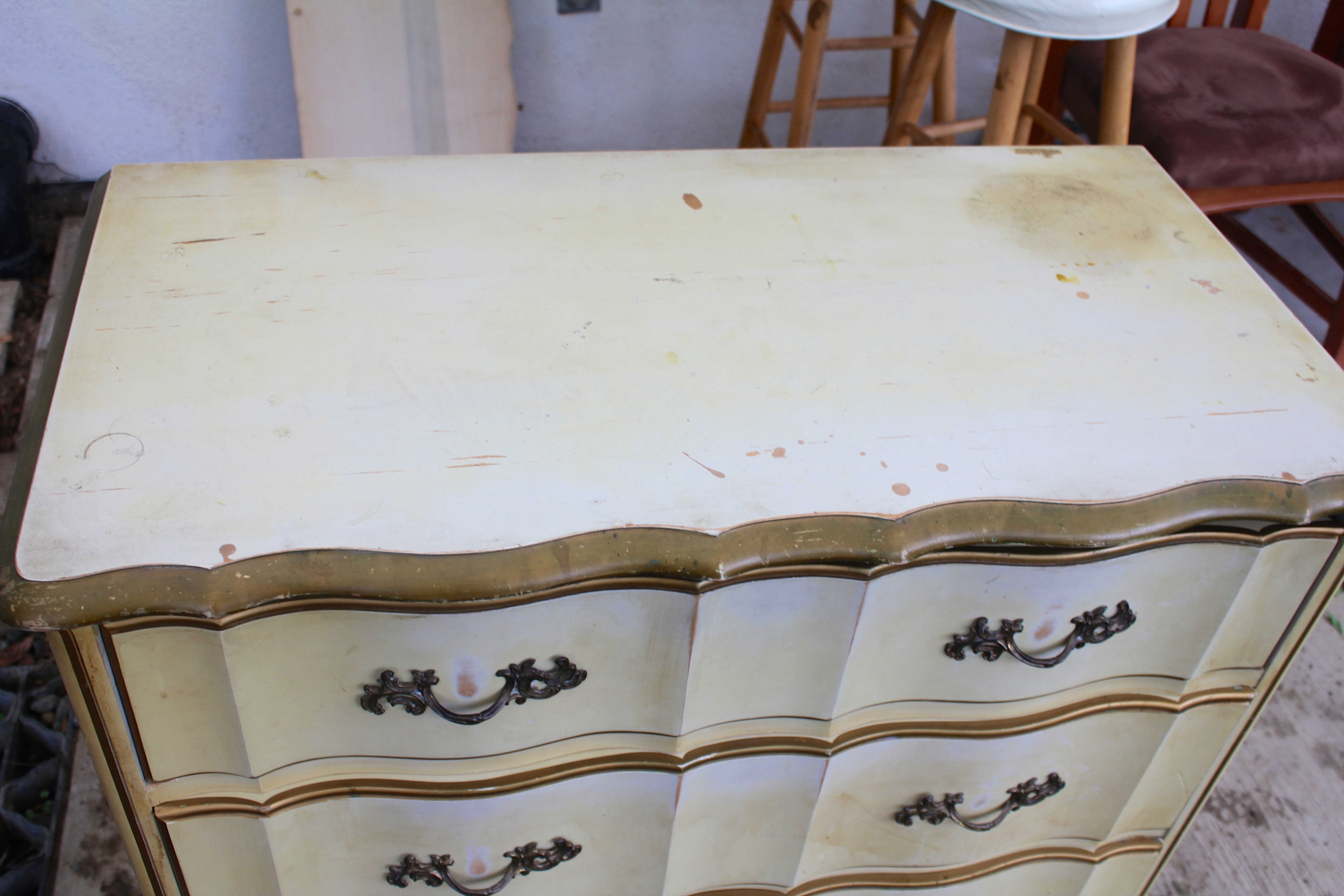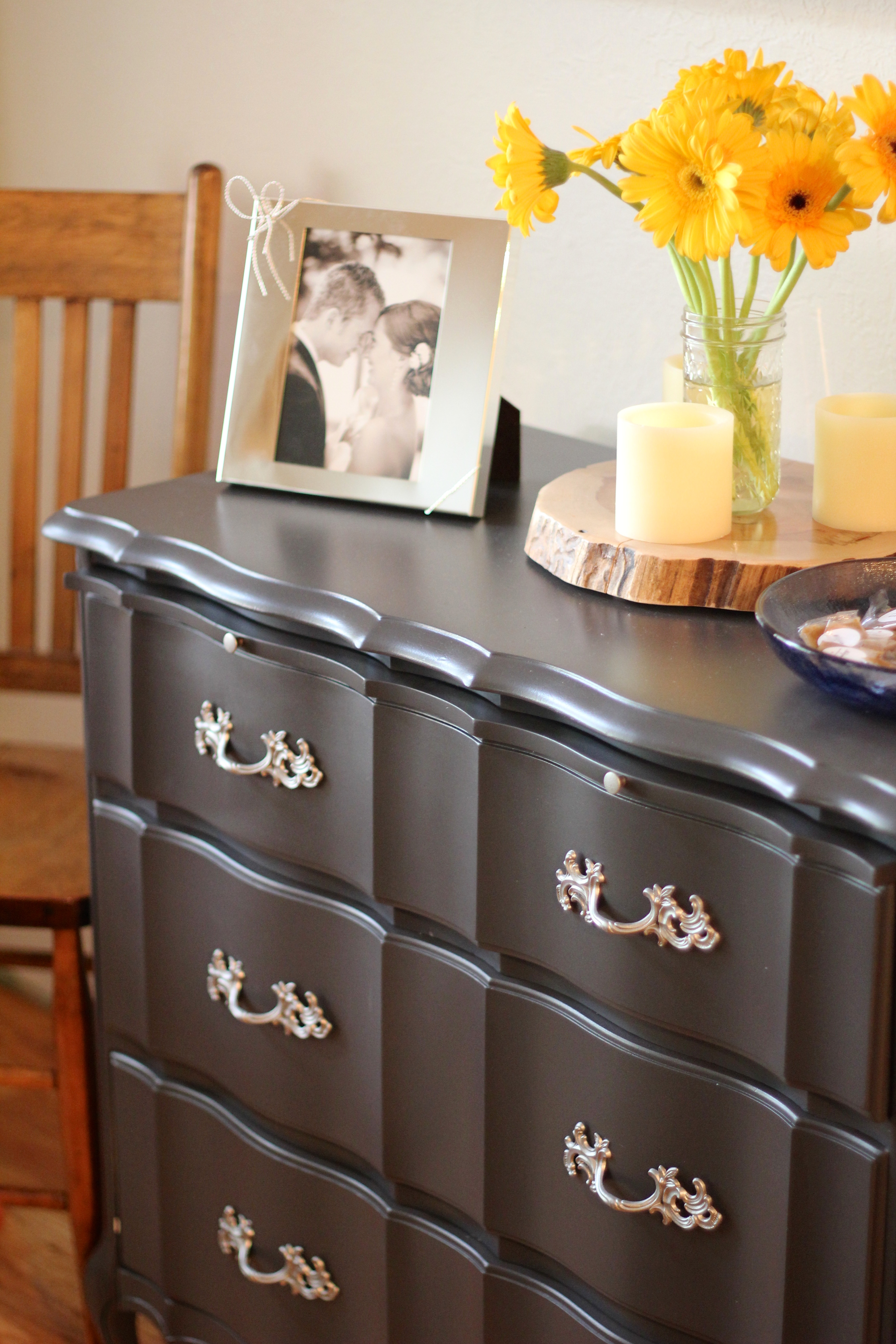 The dresser is a piece of furniture that we’ve had for quite a few years, but have never really been enamored with. It’s very well built, but it was always hard for us to see past the gold… but now that we have room to paint, we decided that this also needed new life! The dresser actually belonged to my great grandma, so it has seen a lot of life and we were very excited to make it seem like new again.