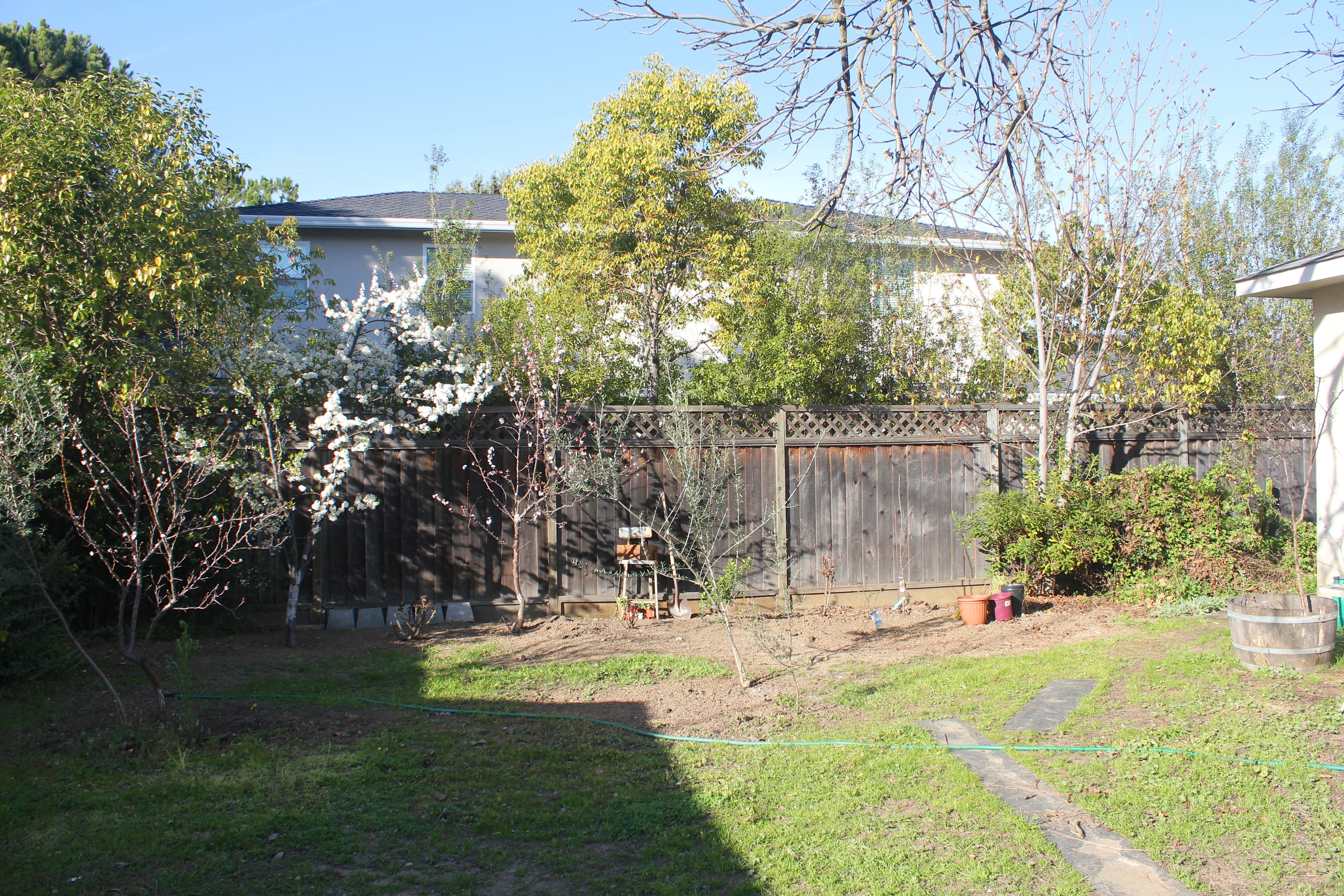 I’m not entirely sure what fruit trees we inherited (I think apricot and cherry?), but we added a lime tree (thanks Chels and Brand!), a blueberry bush, and a honey crisp apple tree. We were also able to salvage two rose bushes, and I was given a third from a job site (maybe not given… It was in the green waste bin and I asked if I could have it!). So our four fruit trees are separated by three rose bushes.