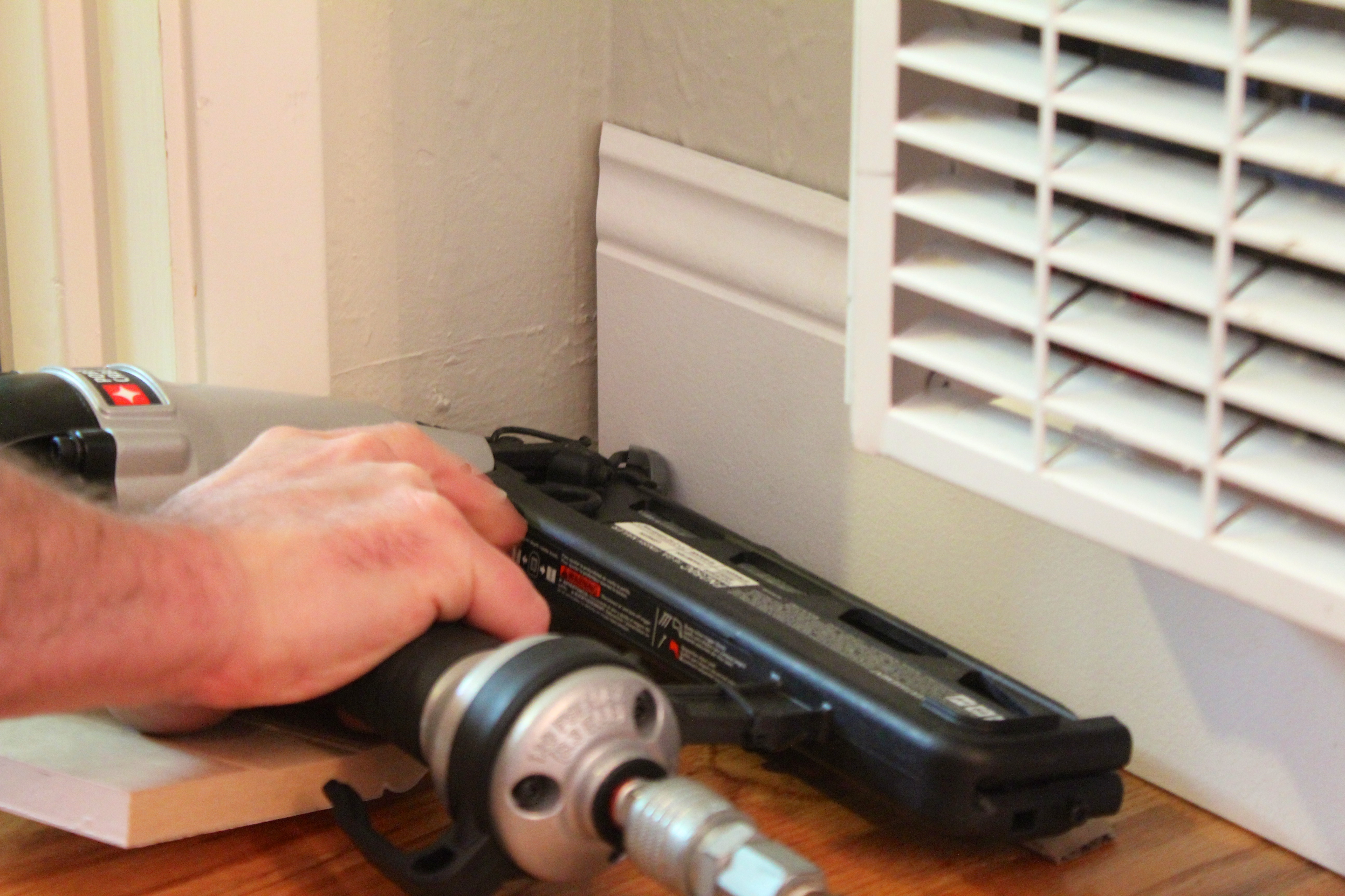 While I was off galavanting around Twain Harte for our annual girls weekend, Justin and my dad were choosing and preparing baseboard for our entire house. That’s right: every room!
