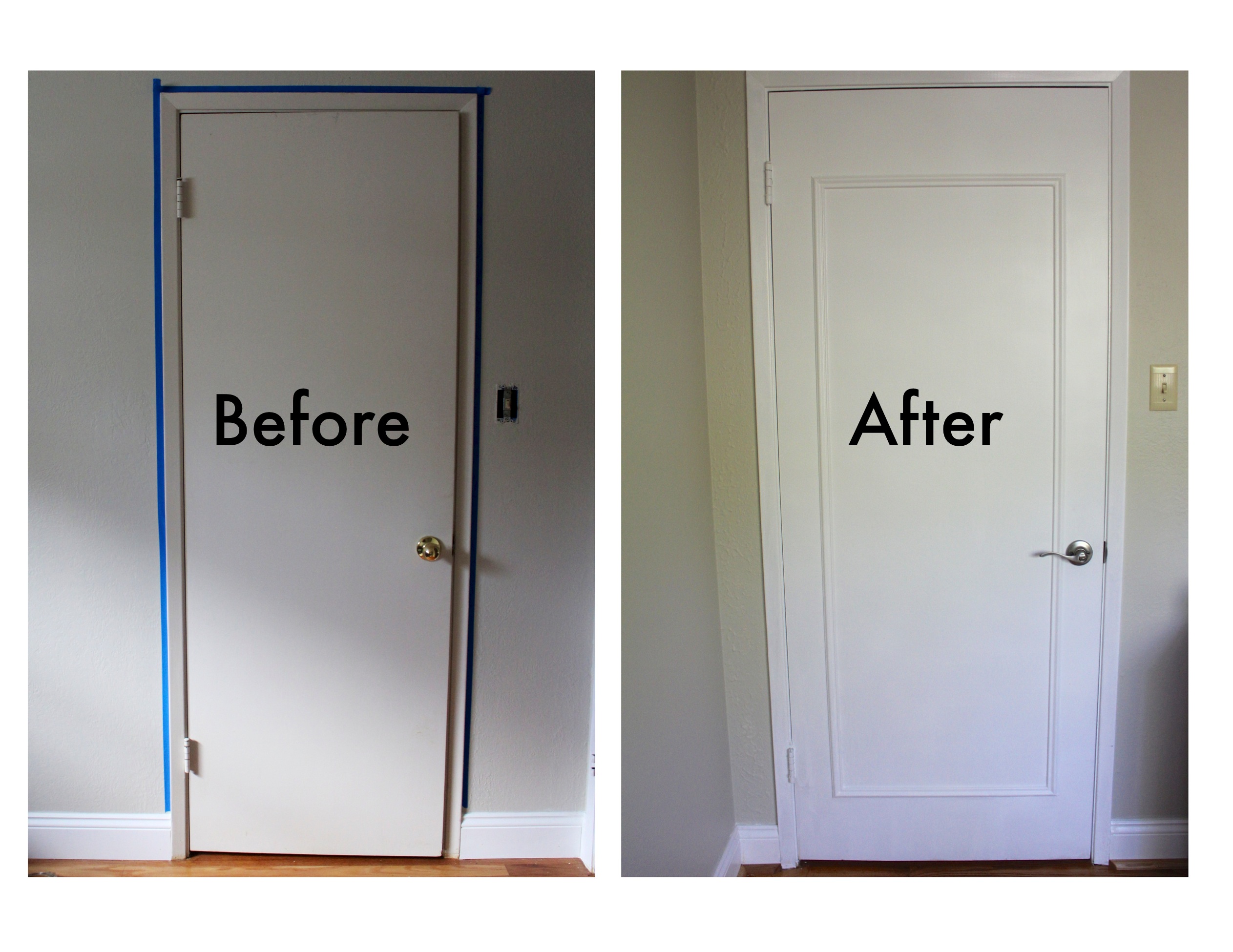 In the process of painting our trim to match our baseboard, we knew we were also signing up to do something with the doors. The question was: what?