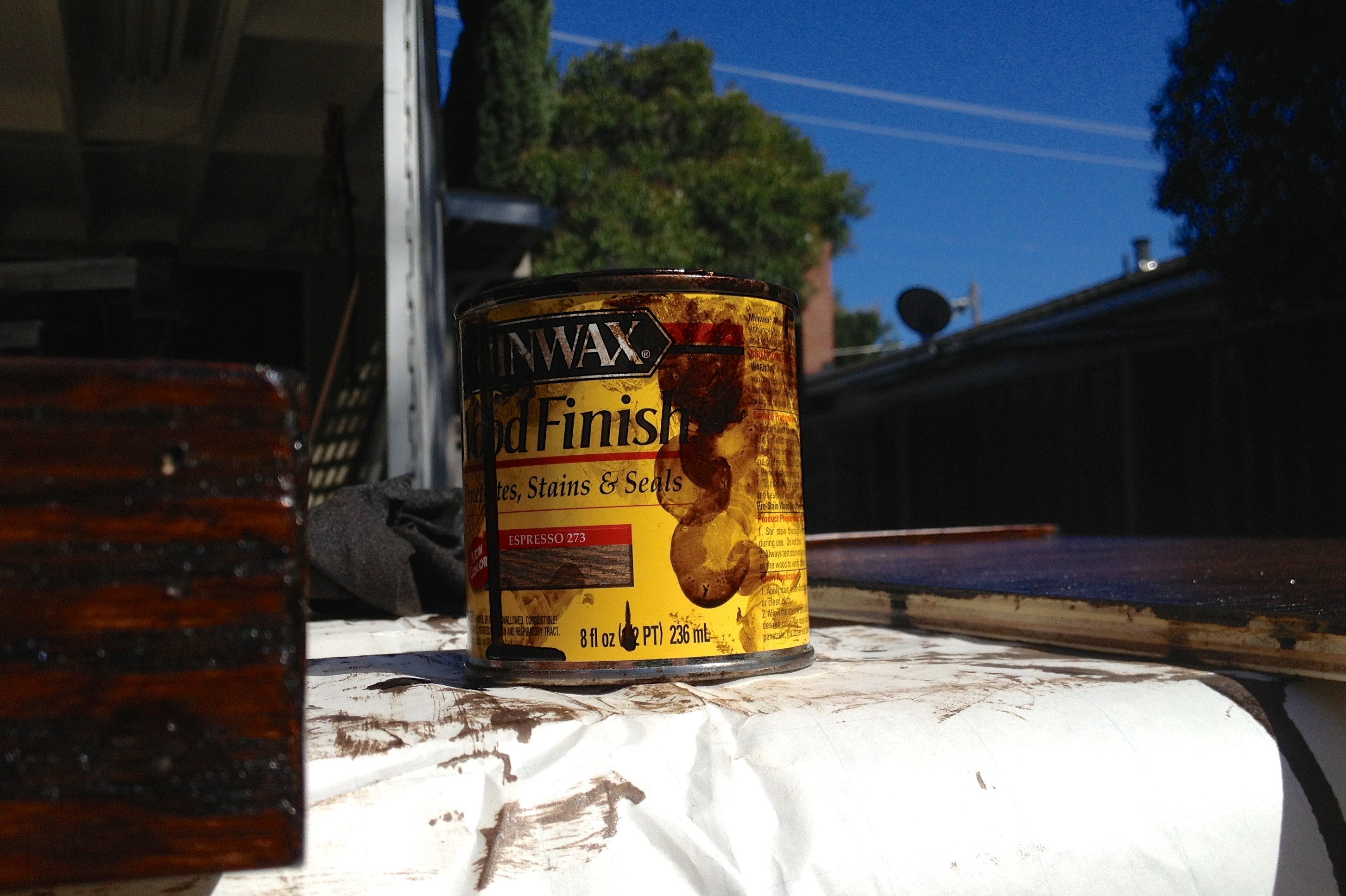 2. The broad face (or the “underside”) is oak plywood and the edges are oak hardwood, all stained espresso.