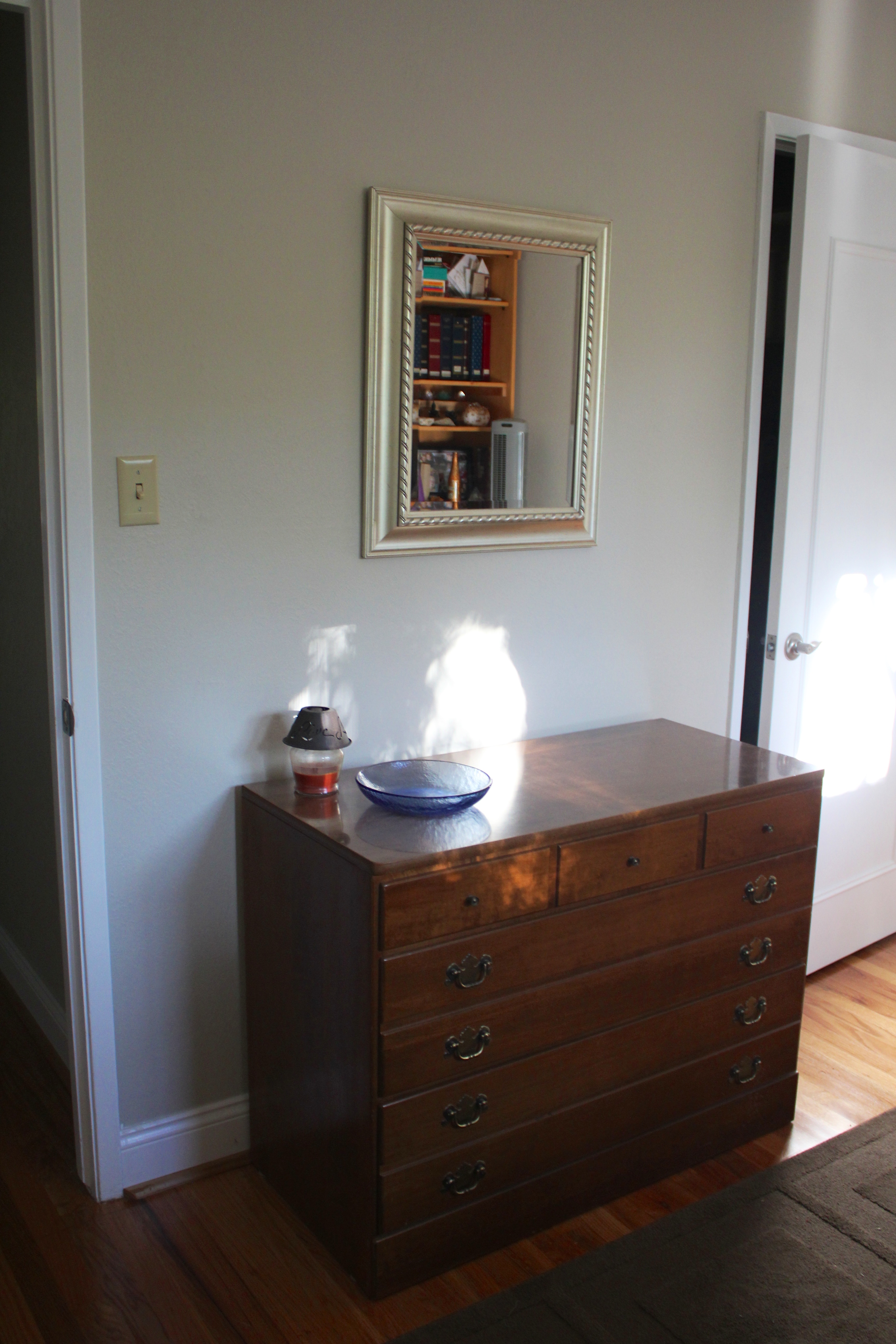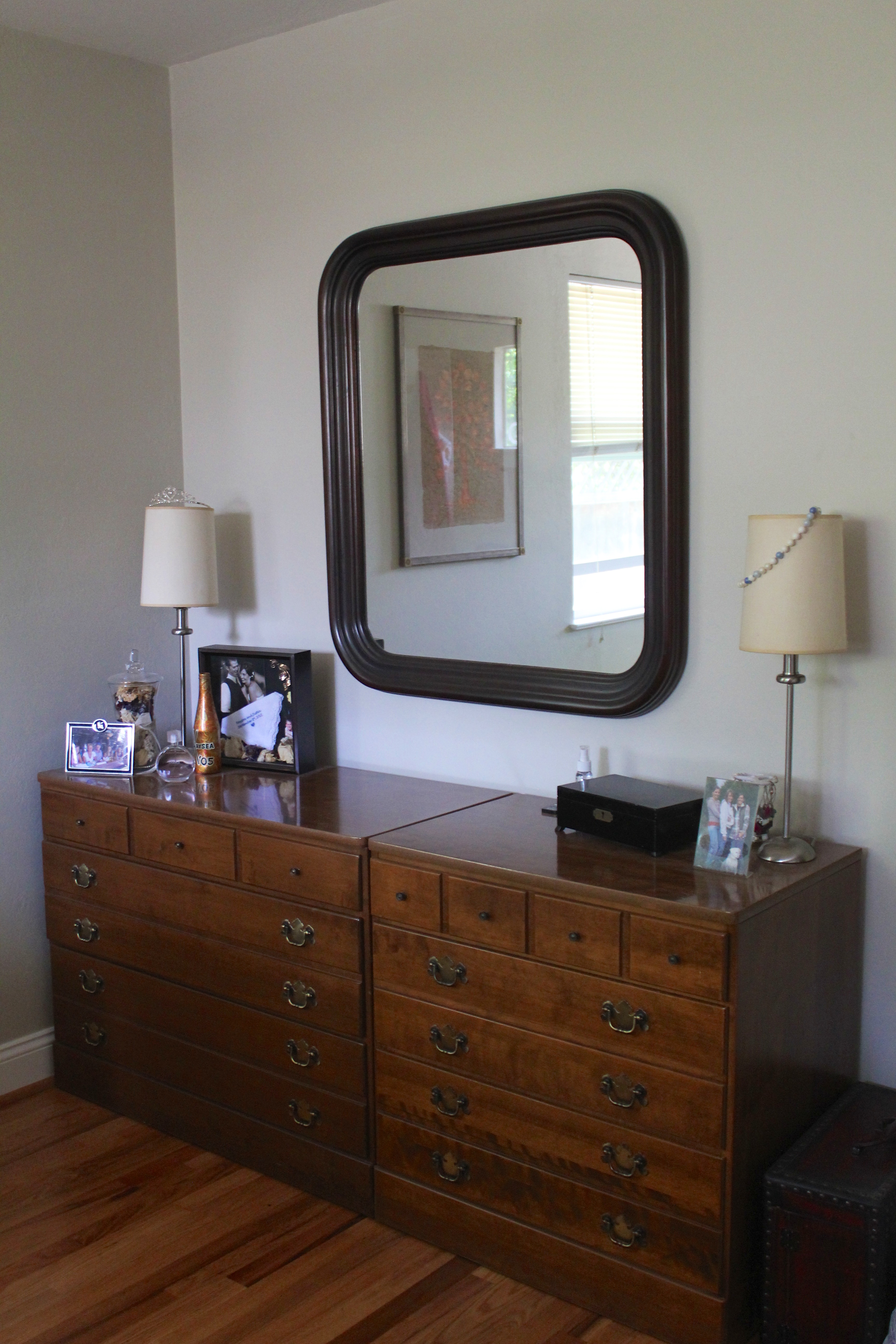 Now for the furniture shuffle. We wanted to put this new dresser in our bedroom and replace the two dressers we had smushed together under the mirror. These are perfectly functional dressers, but we weren’t crazy about the look they created when pushed together.
