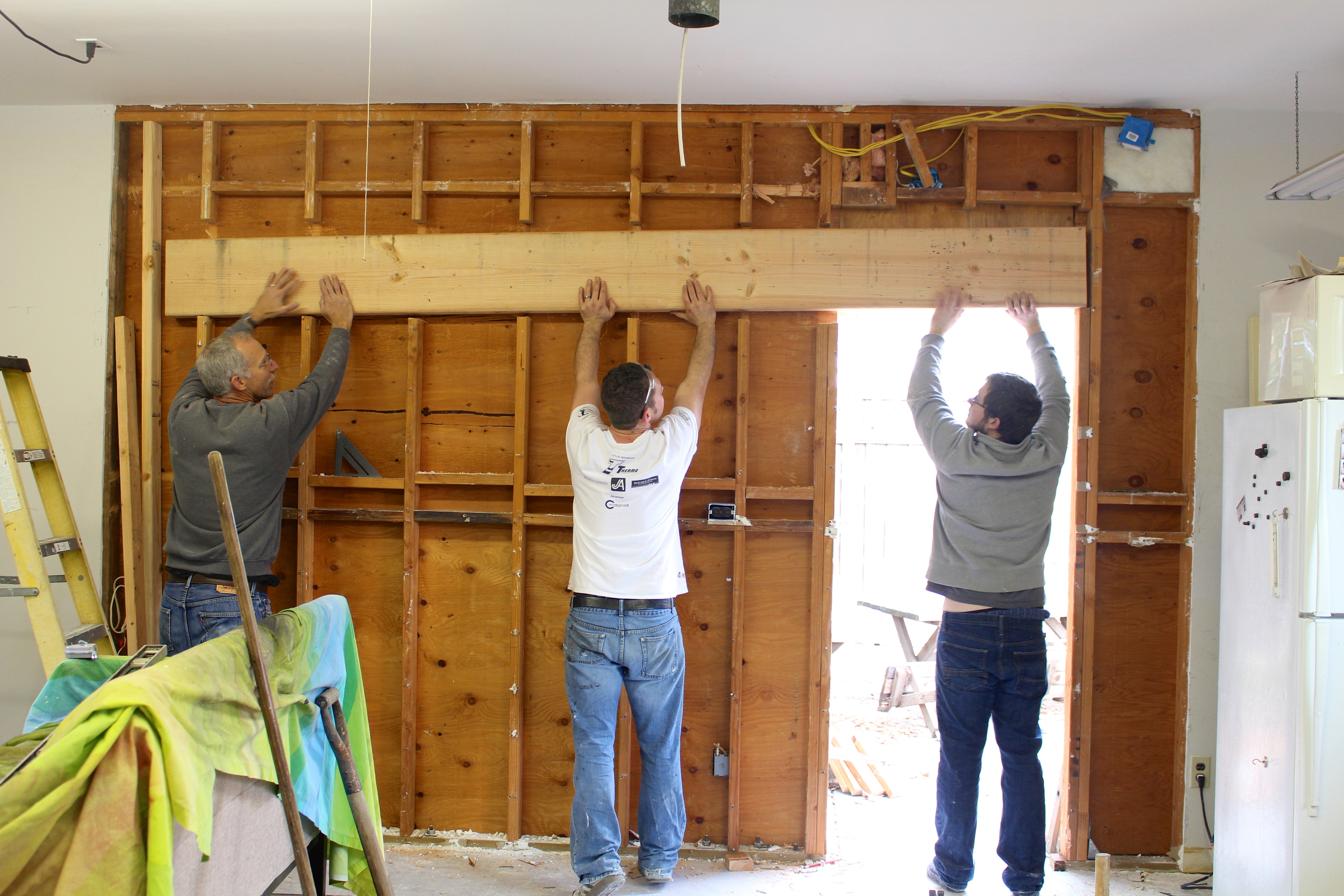 - Build a wall, right down the middle of the building: this is what started the project way back in January! Thanks to Nancy and Dirk for coming to visit and kicking us into gear.