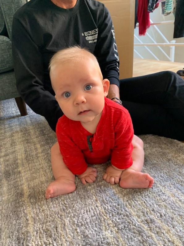 And this happy little dude is six months old already (and really, almost seven!). His personality is really starting to shine and his favorite things are Millie and giggling. And when we were back in Campbell, rolling around after Flo. Also the occasional dinosaur shriek!