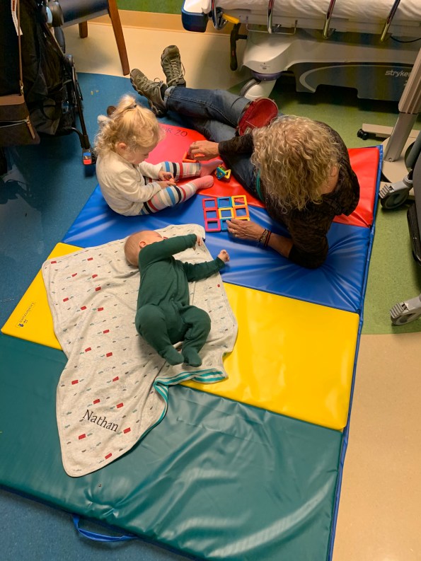 Ma has been here for a week helping out and visiting. While we haven’t been able to do too much fun stuff (2 kids, no car, and questionable weather put a damper on things!), Millie and Nate (and Justin and I!) have loved having her here. Justin was able to head west for some work events, and Ma and I survived just fine with the kiddos. Just today Nate has discovered that he can roll over multiple times in a row and actually move across the room. Which he loves and has me more than a little nervous about what else he will doscover, and how quickly he will discover it.