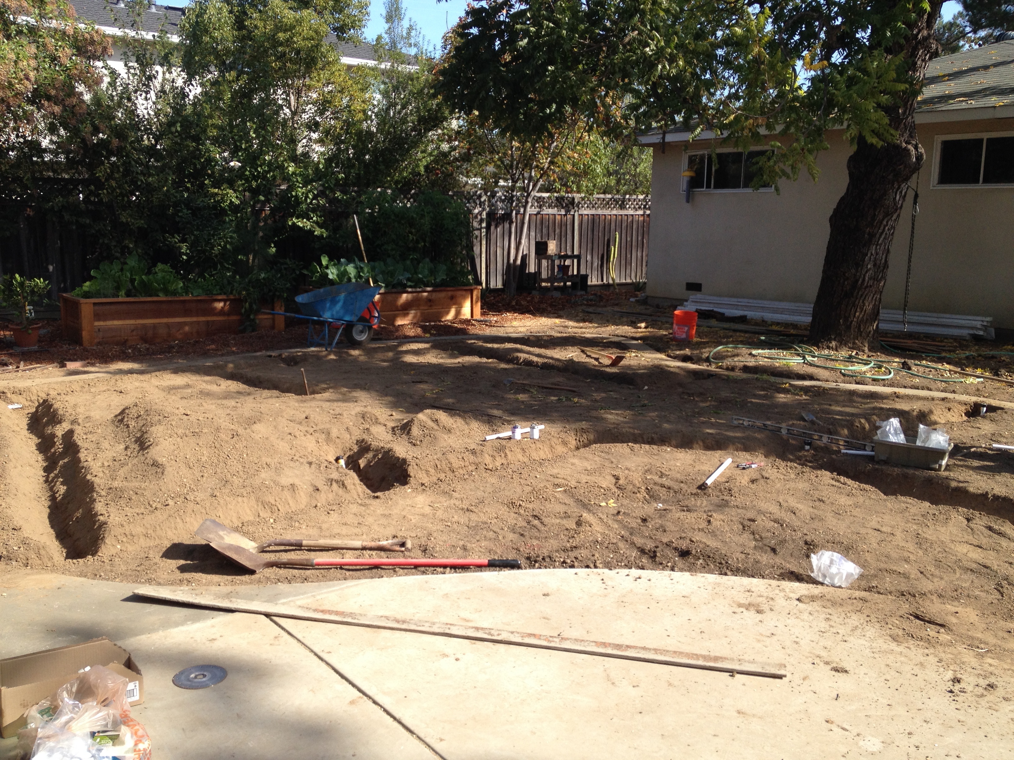 Lastly, before we could roll out the grass, we dug a bunch of trenches and put in sprinklers.