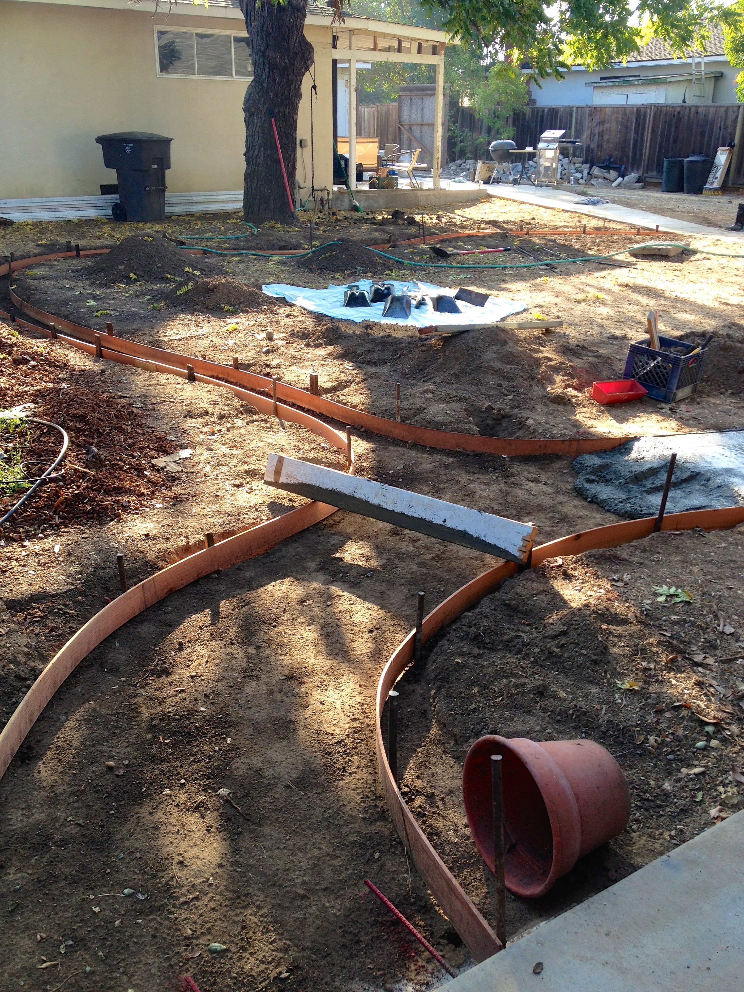 Lots of trenches. Note the rounded concrete corner in the foreground of this photo? I forgot to mention that my dad also cut the square corner into a nice round curve 🙂
