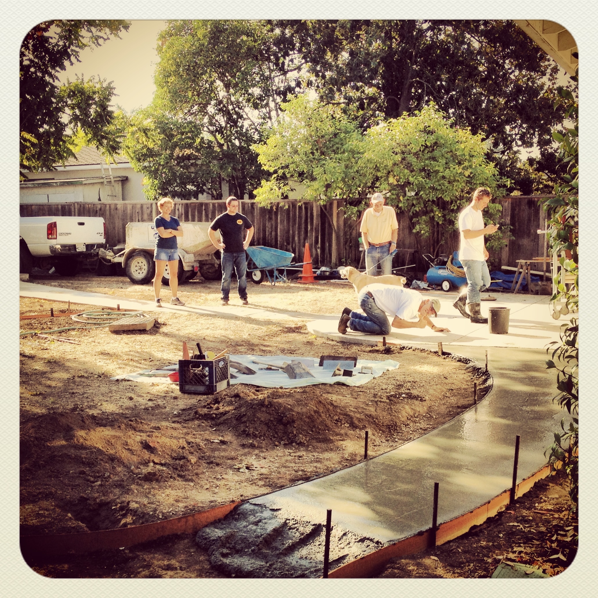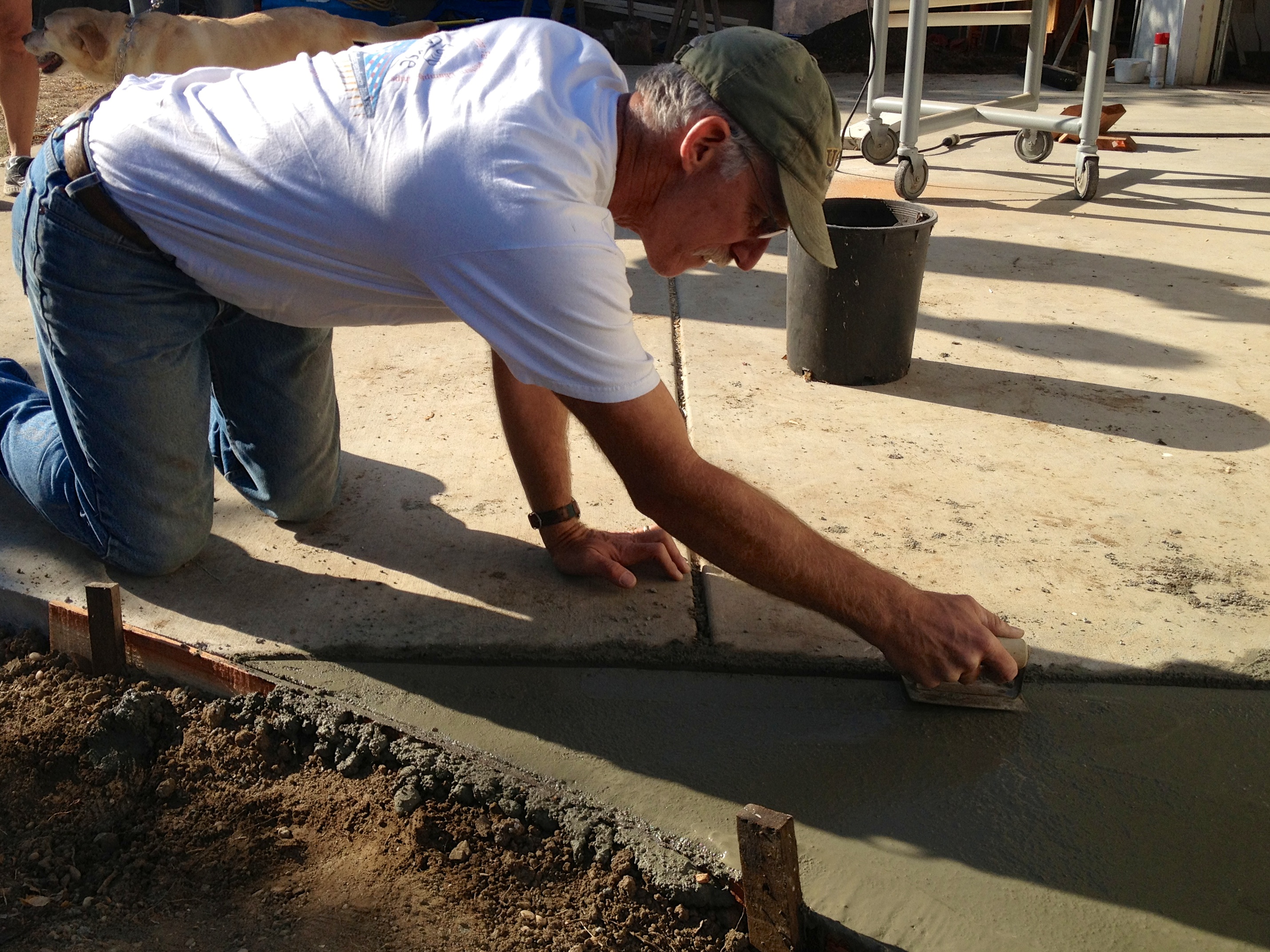 Once the concrete arrived, we had to work like mad to get the concrete into the forms and start troweling the surface before it started to dry. Troweling is a continuous process, but you haven’t to make sure you start early or the concrete sets without you. Knowing we had a lot of concrete to pour, we had all hands on deck that we could recruit.