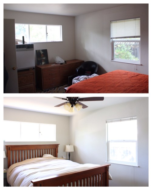 - Although you can't see it in this photo, we also hung some art, refinished a dresser, and put in a giant mirror to bounce some light off and make the room appear bigger and brighter